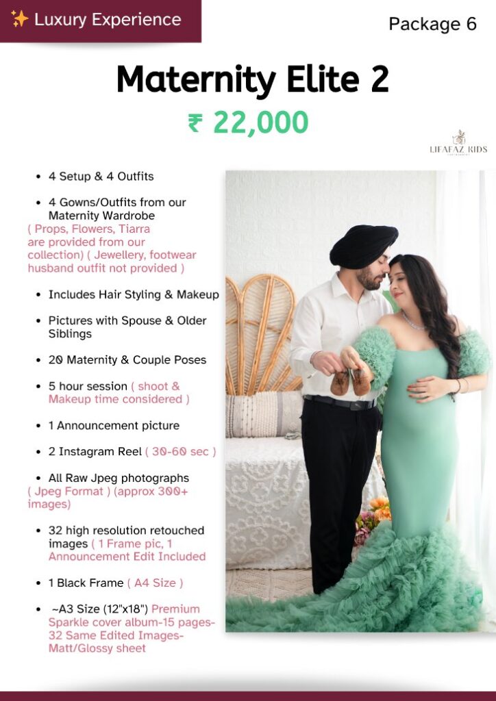 ✔ Outdoor Shoot: Best for natural light, open spaces, and candid moments but Lifafaz Kids don't do outdoor sessions due to operational issues during pregnancy.
