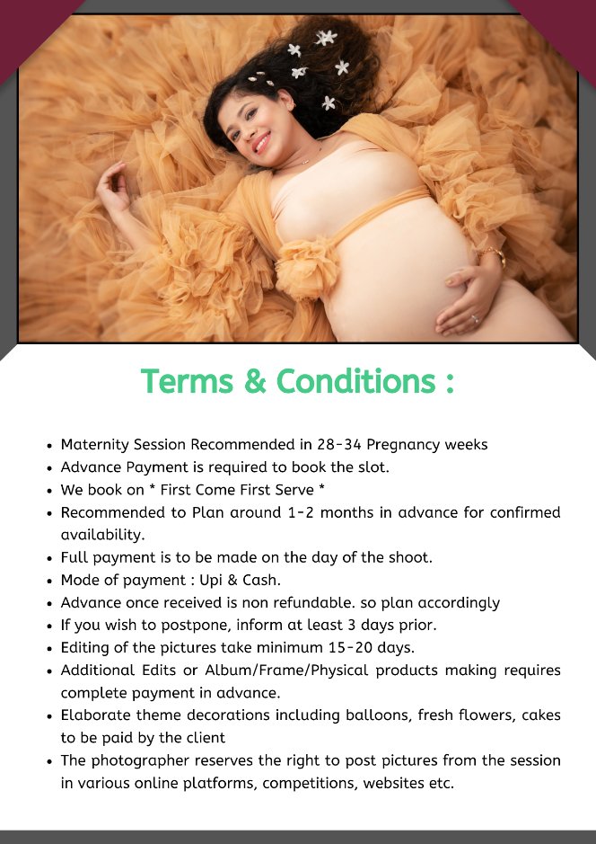 ✔ Best Time for Maternity Shoot: 28-34 weeks of pregnancy.